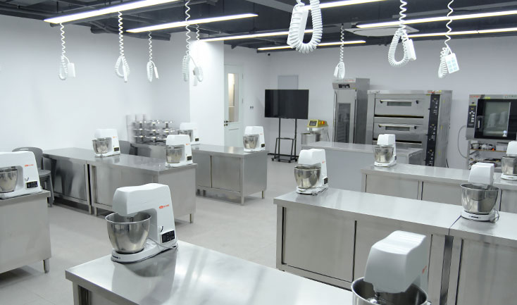 优美西点以简洁的欧式风格打造DIY体验馆、咖啡主题馆、面包工坊、烘焙房、裱花厅等国内领先的教学环境